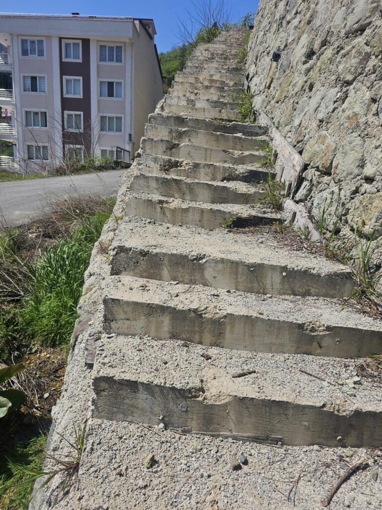 Giresun’un Merkez ilçesine bağlı Teyyaredüzü Mahallesi’nde yaşayan vatandaşlar, Alınca Sokak’taki tehlikeli merdivenler nedeniyle endişe içinde. Dik yamaç üzerine kurulu ve korkuluksuz olan patika merdivenler, mahalle sakinleri için ciddi risk oluşturuyor.